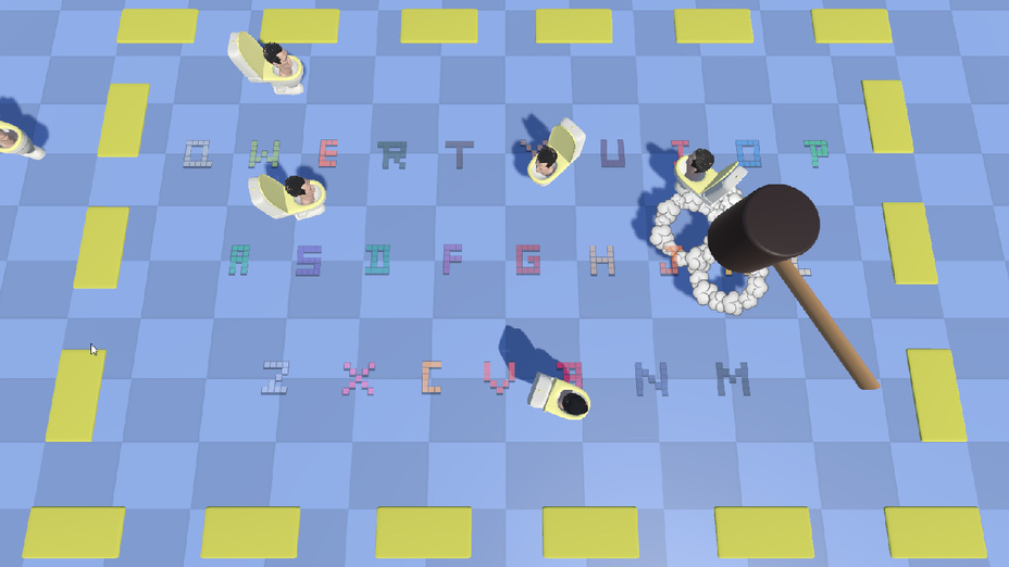 Цель игры – уничтожить всех Скибиди, используя клавиатуру. Нажимай на клавиатуре на букву, рядом с которой в игре находится Скибиди, и по этому месту ударит молоток.