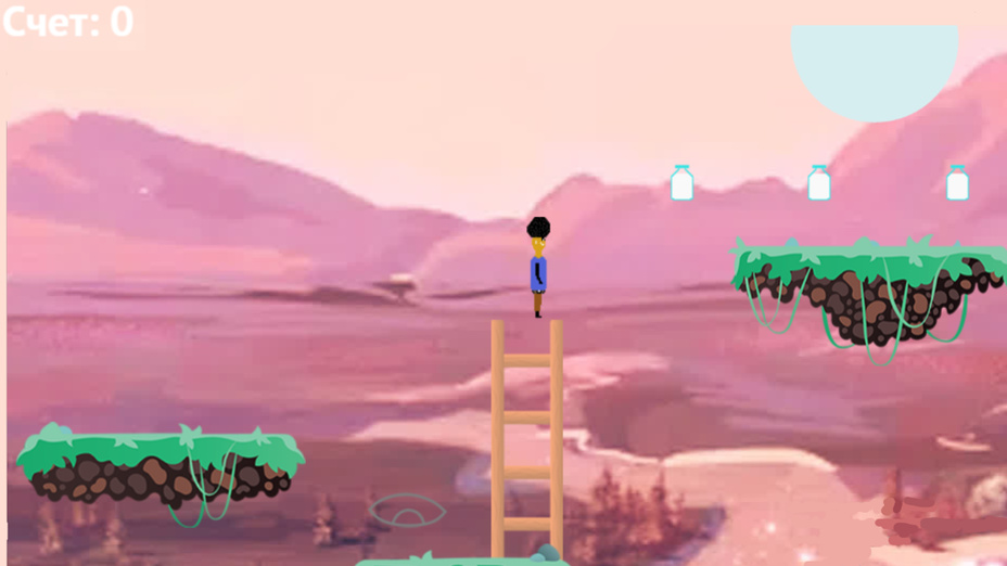 3) По карте разбросаны предметы белые бутылки (кефир), их сбор игроком прибавляет по 50 очков к игре.