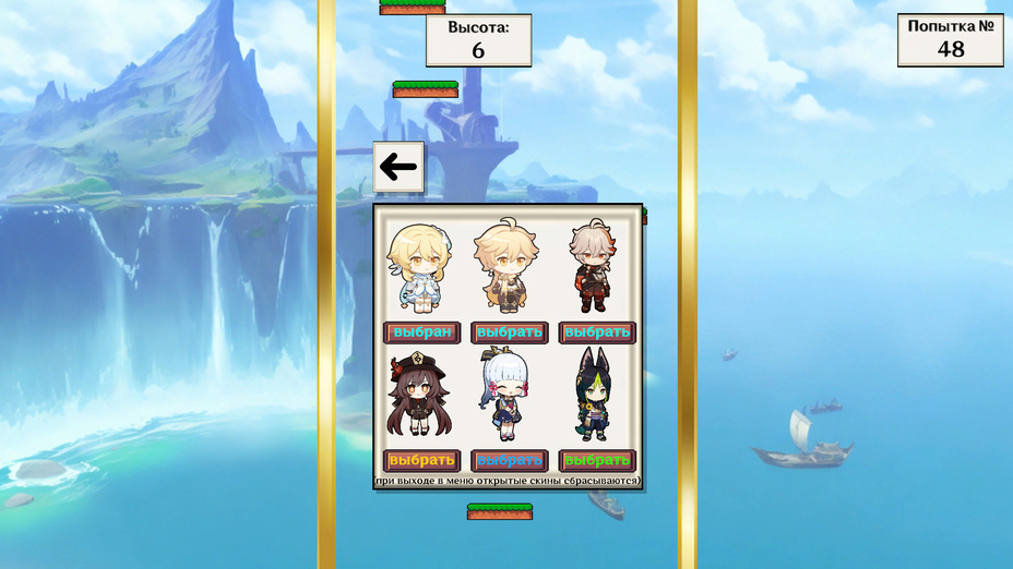 Прыжки по аниме – это захватывающая аркадная игра, выполненная в стиле популярной игры Геншин. Погрузитесь в захватывающий мир, где вам предстоит совершать невероятные прыжки и уклоняться от монстров. Вам предстоит преодолевать вертикальные уровни с помощью героя, которого нужно контролировать, чтобы он прыгал на платформы и избегал препятствия. Выполняйте прыжки так высоко, как только сможете, чтобы побить свой собственный рекорд. Вам придется быть внимательным и ловким, чтобы удерживать героя на платформах и не попасть в ловушки, которые подстерегают его на каждом шагу. Не забывайте, что каждый прыжок влияет на вашу оценку и успех в игре. Показывайте свои навыки и мастерство, чтобы стать настоящим мастером этого захватывающего испытания. Готовы ли вы совершить свои первые прыжки и покорить вершины? Приготовьтесь к захватывающему приключению и стремительным прыжкам в этой увлекательной игре, полной магии и опасностей!