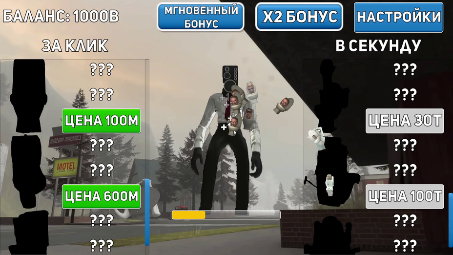 Для того чтобы заработать деньги, кликайте по камерамену. Кликая с достаточно высокой скоростью, вы получите бонус в виде удвоенного дохода. Заработанные деньги можно тратить на покупку новых скибиди туалетов. Скибиди туалет может повысить ваш доход от клика или же сам автоматически приносить деньги. Цель игры – открыть все скибиди туалеты.